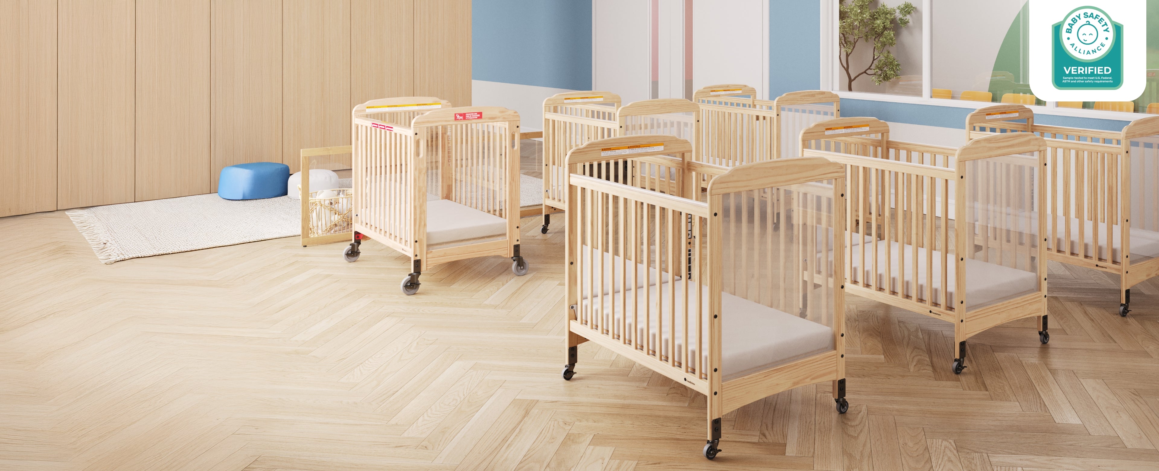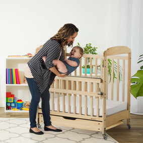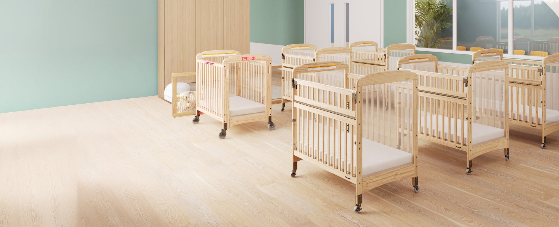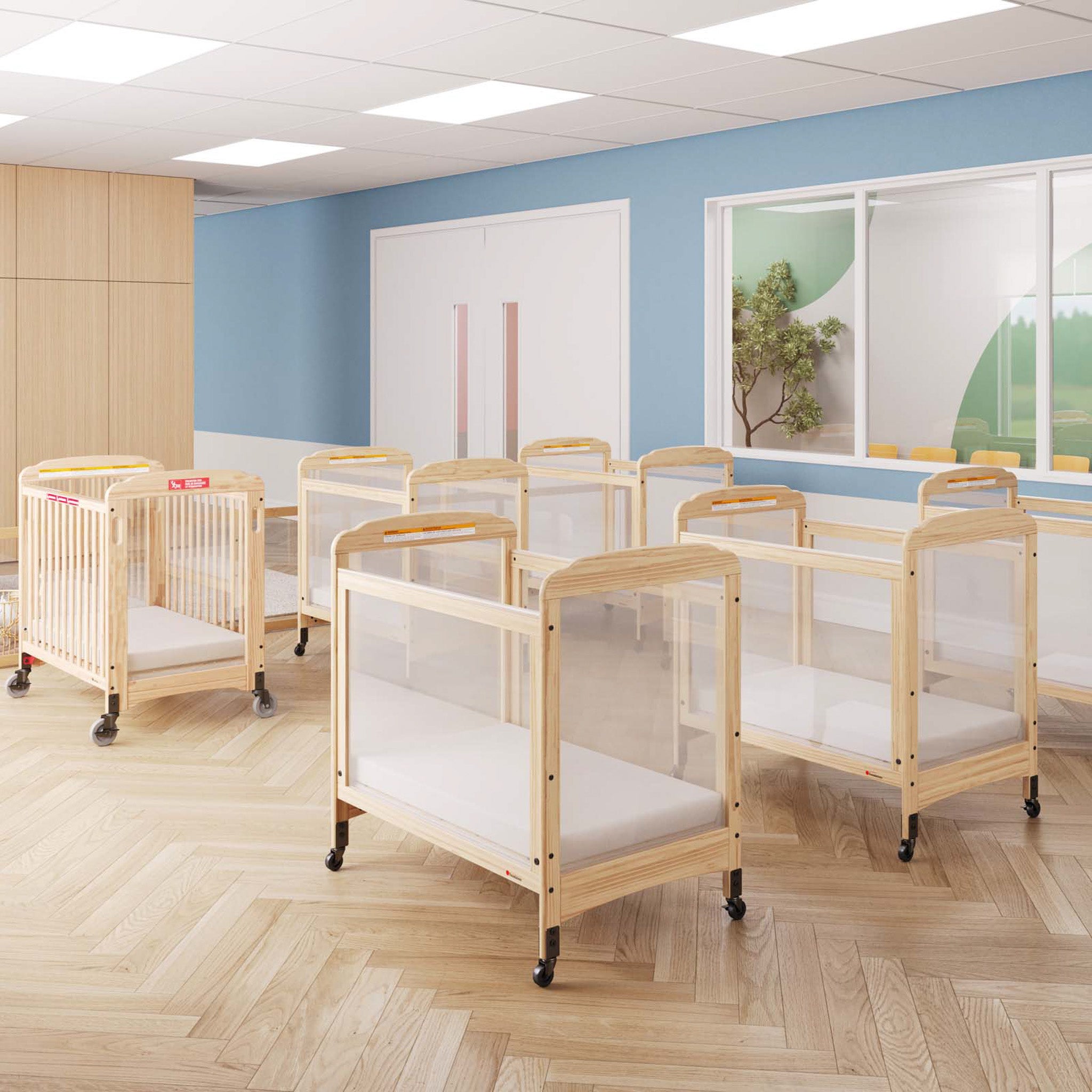 Specially designed for commercial childcare environments, the Serenity Fixed Side Crib with ClearView panels adds a vital layer of protection to prevent the spread of germs. All Serenity cribs feature 2" non-marking, ultra-quiet casters for easy portability and a 3" InfaPure™ mattress with adjustable height to accommodate growing infants.