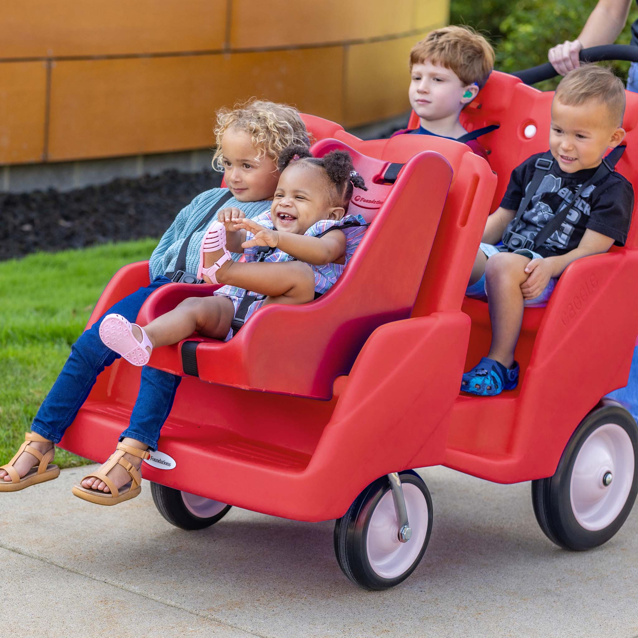 "For the kids, ride-on toys like the puppy, squirrel, and bikes are always a hit. For the teachers, the stroller is hands-down the most used item every day. The Roadster Duo Stroller is like the Cadillac of strollers! Even with two kids in it, I can push it with one hand. It’s so smooth and easy to maneuver. Everyone here loves it—it really is the best of the best."