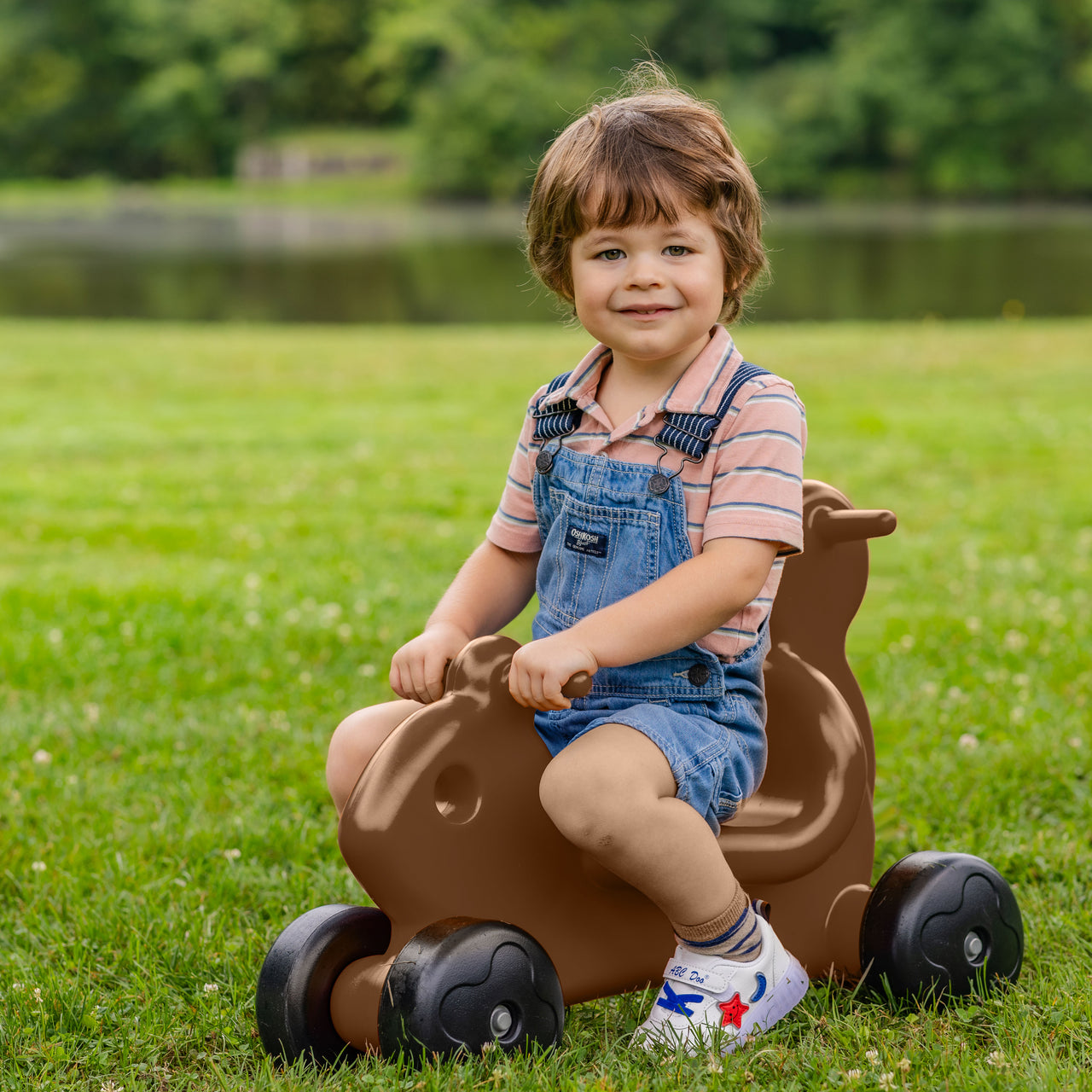 Handles on the tail enables toddlers to push as easily as they ride