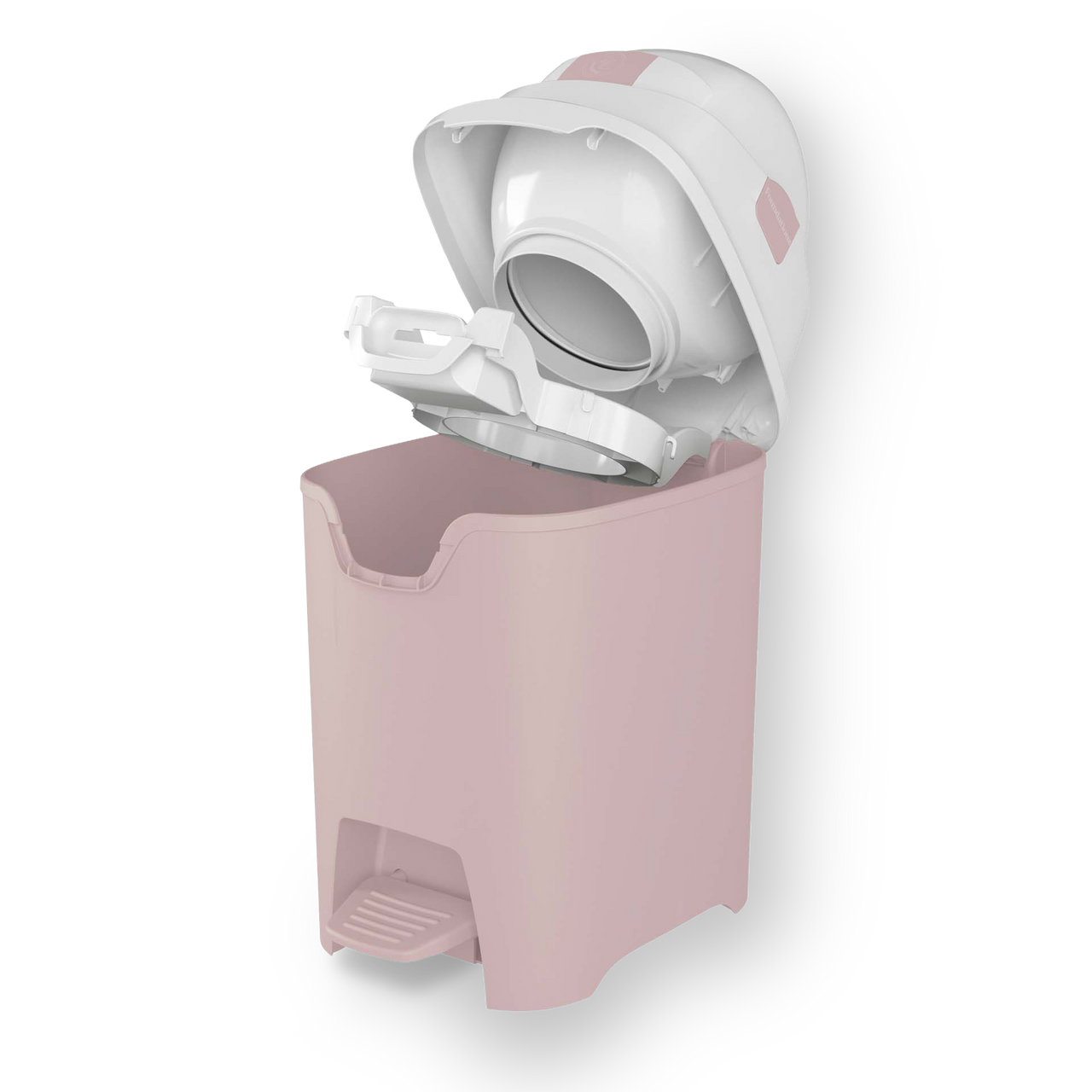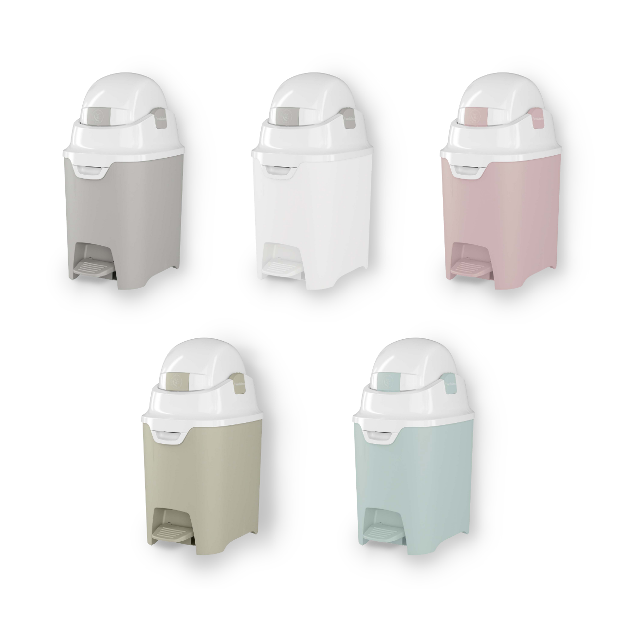 Offers airtight, odorless diaper disposal with a patented, easy-to-use pivoting lid