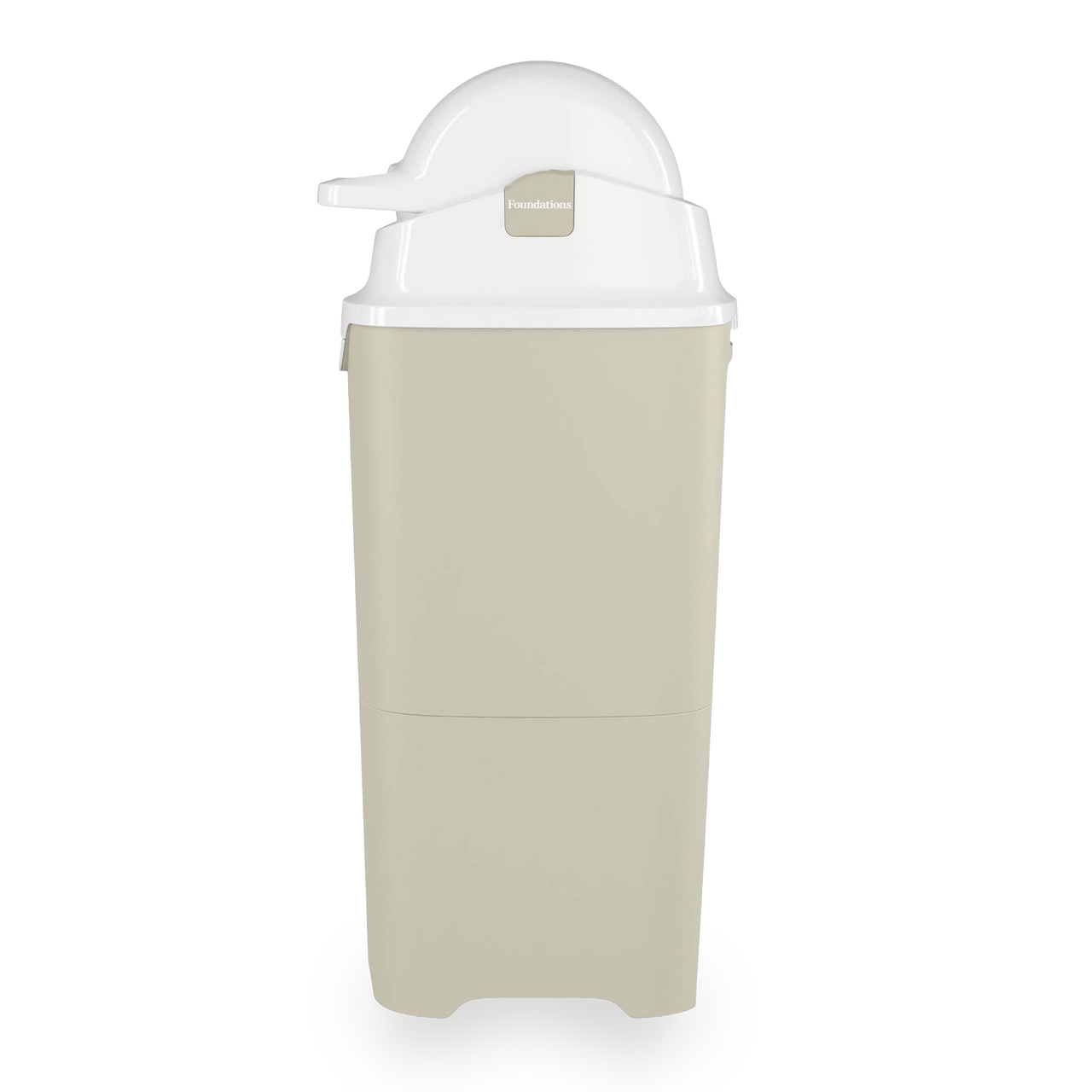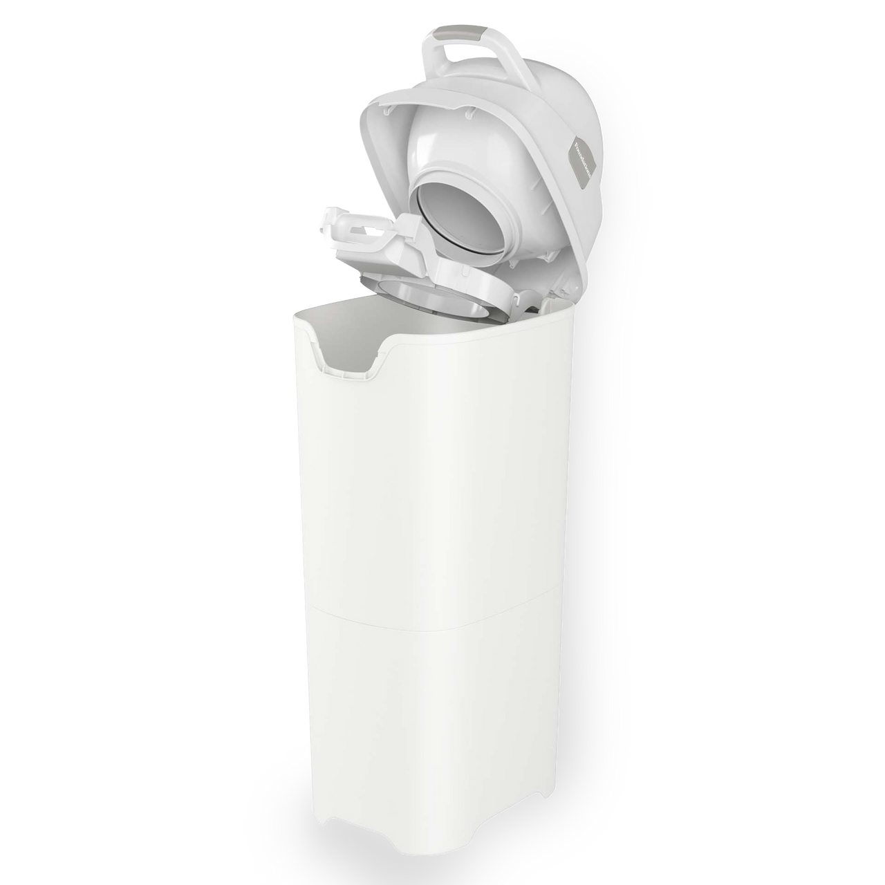 Offers airtight, odorless diaper disposal with a patented, easy-to-use pivoting lid