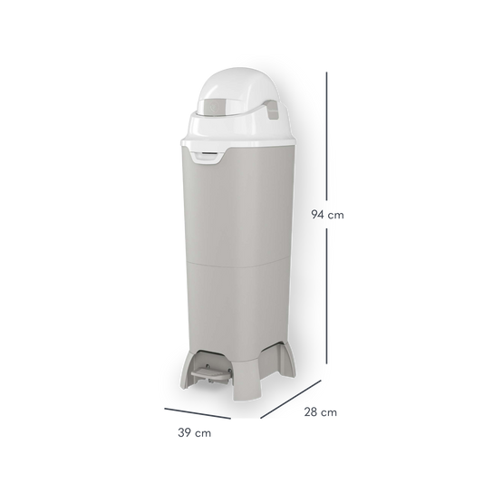 Offers airtight, odorless diaper disposal with a patented, easy-to-use pivoting lid
