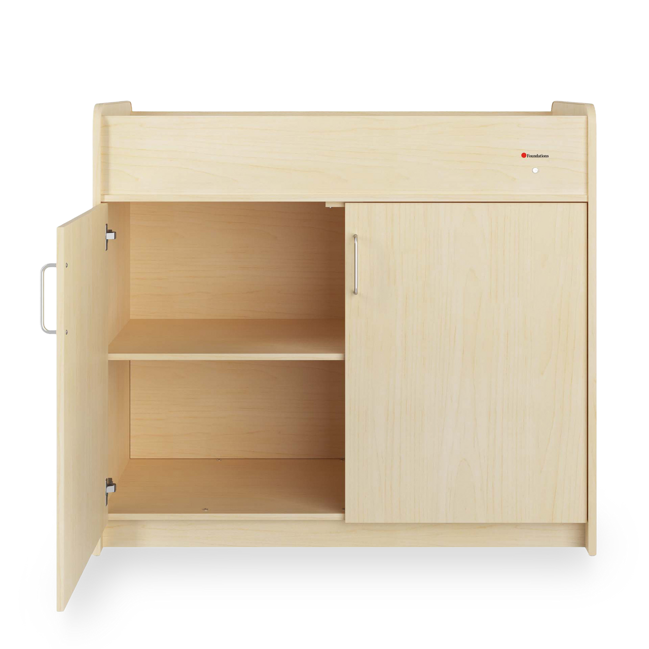 Features two cabinets with soft-close hinges