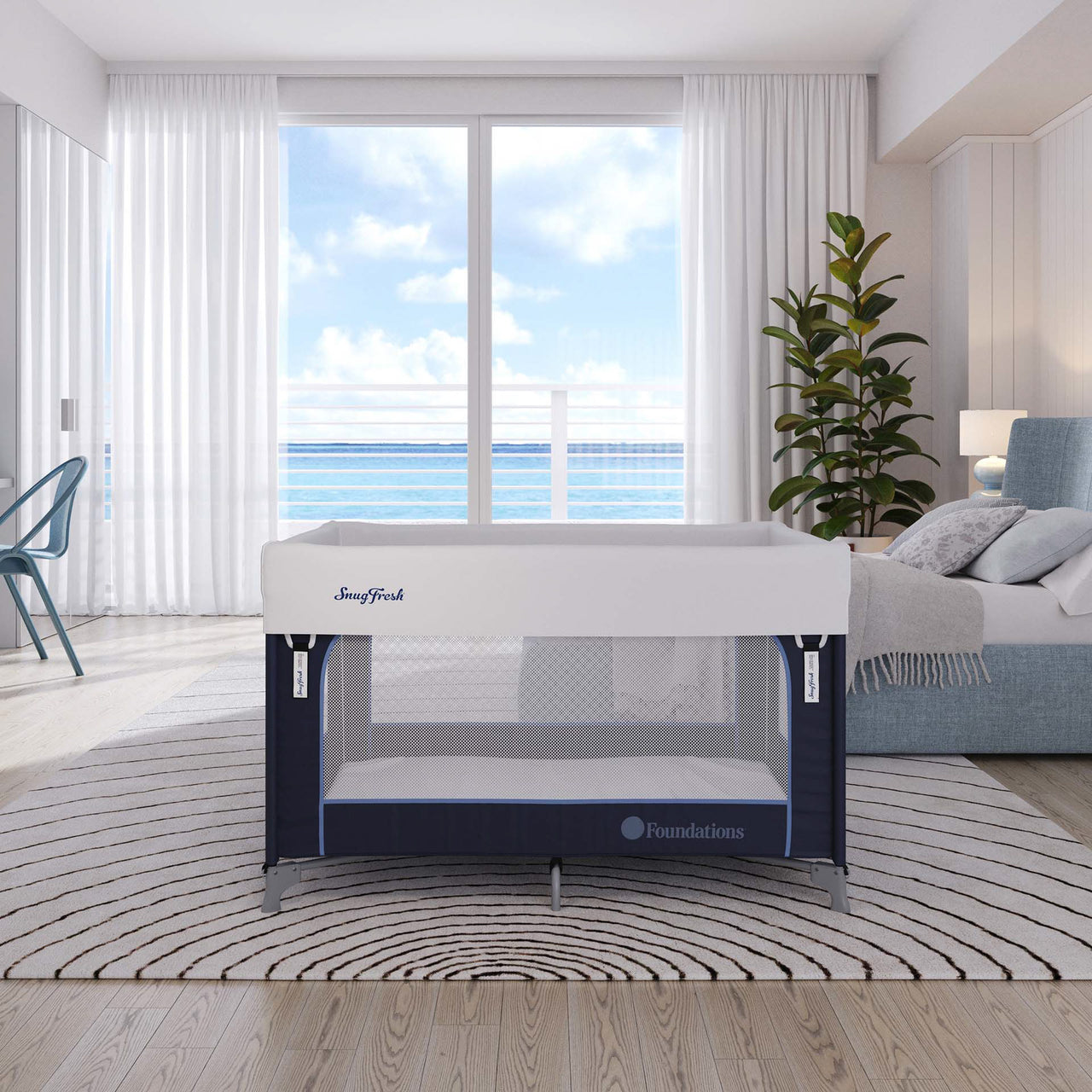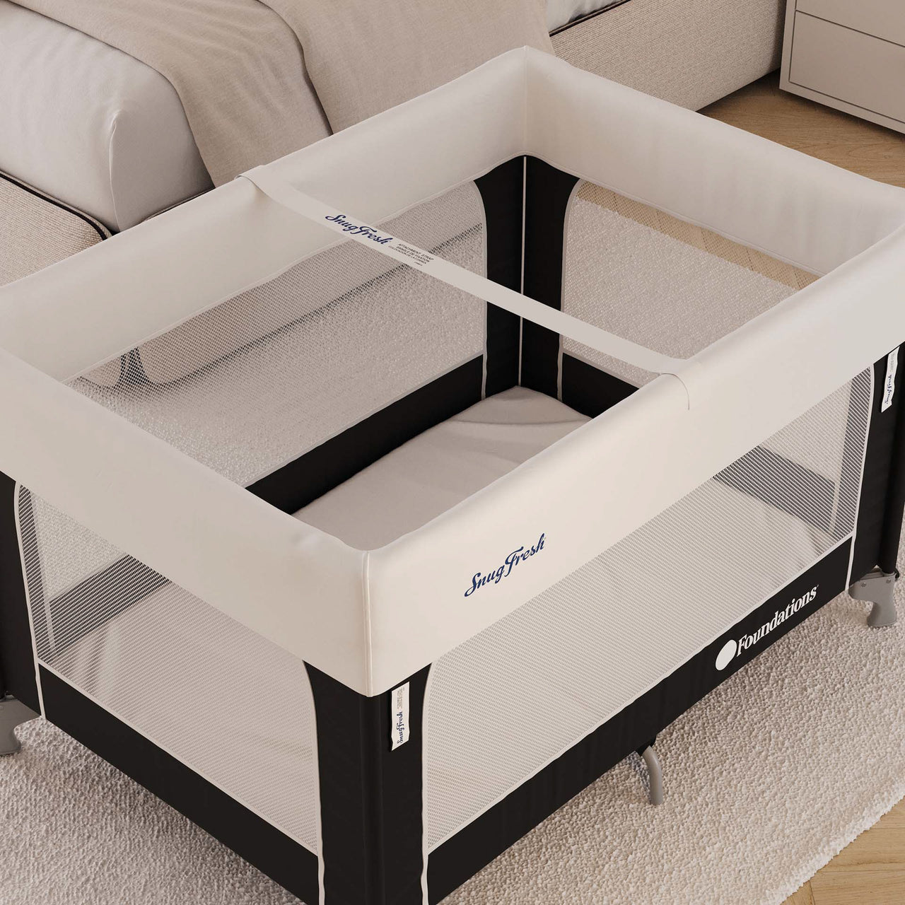Includes an all-in-one sheet and microfiber crib cover for easy sanitization after every use